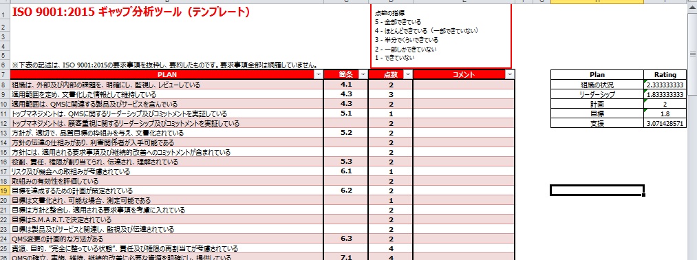 ■ギャップ分析テンプレート結果サンプル画像